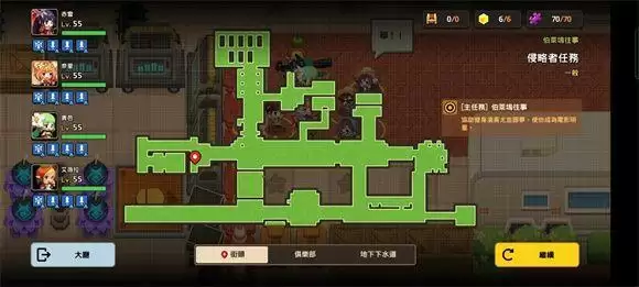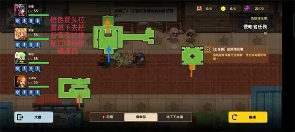 1:侵略者任务关卡小地图(同颜色箭头对应出入口)