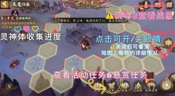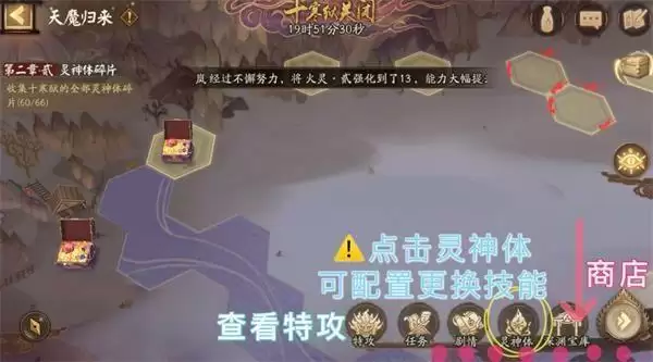 有些格子带特攻加成和技能加成,打通后,可以打开眼睛点击灵神体配置技能