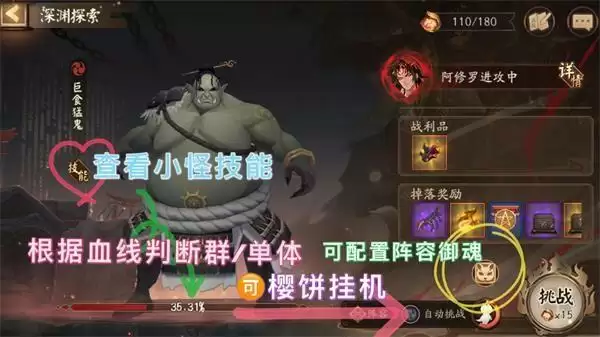 每个战斗格点进去后可查看战利品,小怪技能以及血线
