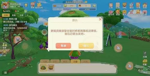 此时可以提示你更换造型就会把小屋里面的家具全部都给收进背包里面,所以大家不用担心换了小屋家具就没有了。
