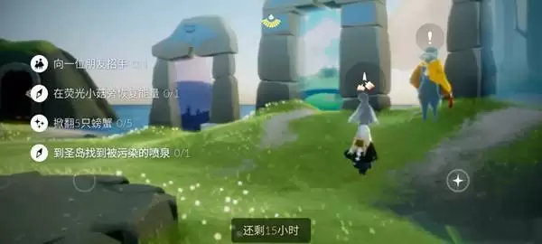 3、做完任务之后,还可以到旁边拿破船上的烛火,大家不要长时间停留在被污染的喷泉,会掉翅膀的能量。