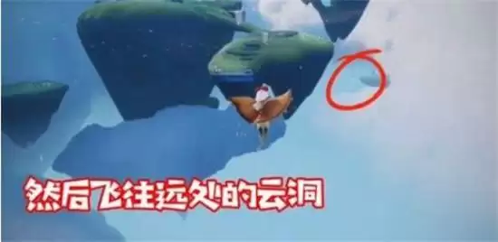 2、我们在隐藏图入口平台跳跃点朝前看,能够看到一个云洞,大家直接飞过去就好了。
