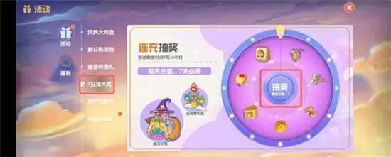 3、在活动中,点击右侧的【抽奖】按钮,进行抽奖,连续抽7天必得摩天轮;