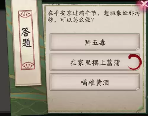 阴阳师想驱散妖邪污秽正确答案是什么?想驱散妖邪污秽正确答案奖励是什么?在平安京过端午节,想驱散妖邪污秽,应该怎么做呢?这是阴阳师6月15日重午节会答题题目,很多玩家都不知道该选择哪一个,下面就赶紧跟游乐小编一起一睹为快吧!