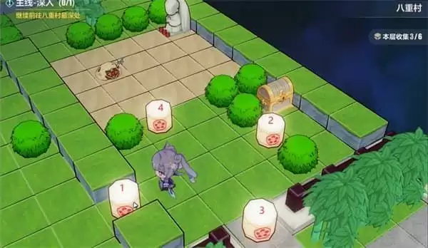 互动完灯笼消失,回去把开路用的雷元素带来,激活遗迹守卫,至此八重村区域全收集达成,树莓进度14/26。晚风竹林区域第二层的宝箱仍然拿不了,还是7/8,要等到后续击败城主后,才能拿到面具和德丽莎互动。