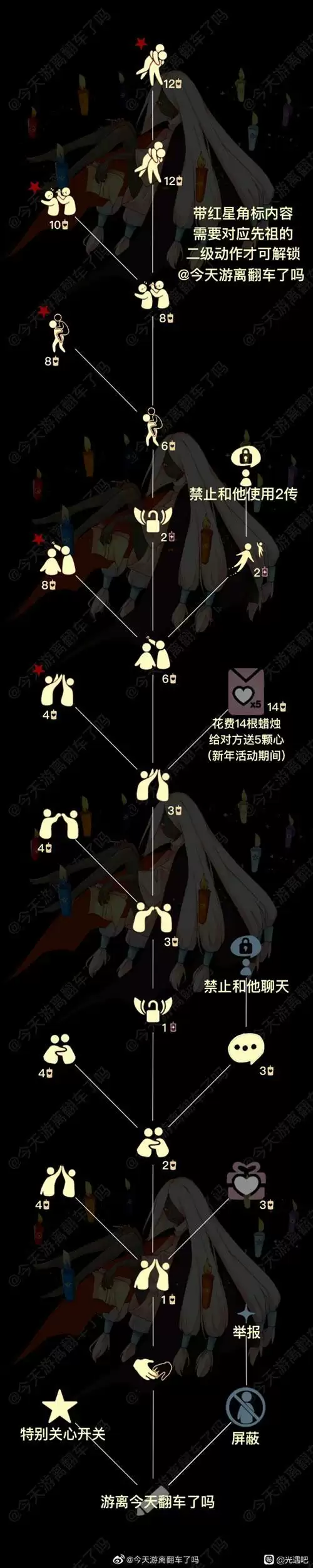 2、另外带有星星的是需要你有了相应的先祖,然后才能解锁这个动作的。