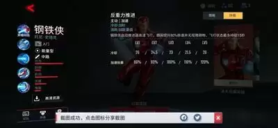 钢铁侠启动推进器高速飞行,期间提升80%移速并无视障碍物,飞行状态最多持续15秒。