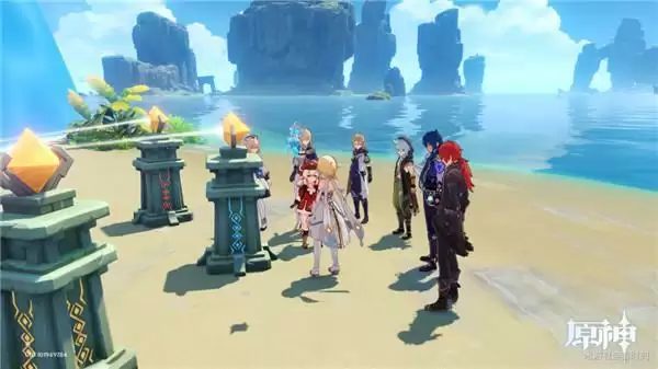 在水结界的岛屿上待到凌晨6点-8点,大家发现之前放在海边的三颗水晶旁
