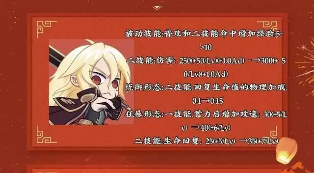 赛季更新后调整了9名英雄,第1位是李信。前期李信的被动普通攻击或者技能命中敌人增加的额外经验值翻倍。李信二技能回复生命值以及狂暴形态下的攻速加成也都大幅提高。高地保安即将迎来逆袭。