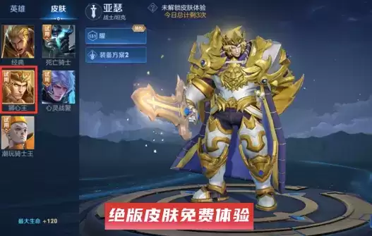 不过需要注意的是,这个体验是有次数限制的。每天系统会赠送三张试用券,一张试用券试用一次,试用券使用完之后,还想再体验就只能等第二天再赠送试用券了。这个福利其实比较适合想入手某款皮肤,但是又对皮肤的手感不太放心的话,就可以通过这个模式先来体验,然后再决定入不入手皮肤了。