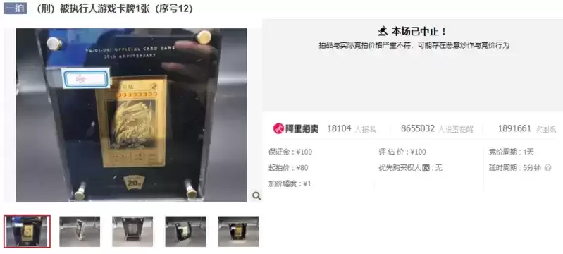 这里需要说明的是,根据《中华人民共和国民事诉讼法》第一百一十一条及《最高人民法院关于适用〈中华人民共和国民事诉讼法〉的解释》第一百八十七条之规定,对于在司法网拍中恶意抬价,扰乱司法拍卖秩序的买受人,人民法院可以对其罚款、拘留,构成犯罪的,依法追究刑事责任。而在此次事件中,对“青眼白龙 游戏王 纪念卡牌”抬价的行为,法院方面会作何行动,目前尚不得而知。