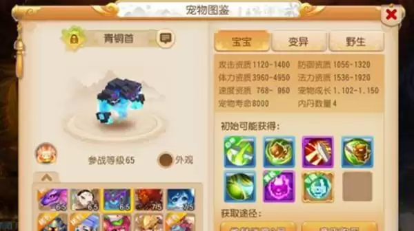 青铜首(参战等级:65级):迷失之地最骁勇善战的种族,拥有强大的战力,出生便自带盔甲,崇尚武力和战争,拥有优秀防御资质与体力资质的物理系宠物。