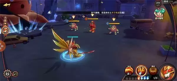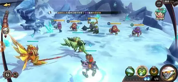 第二回合:1号技能,晕住就随便打了,2号技能,3号打狮子