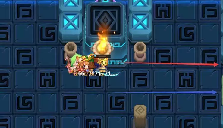 细节5:火盆传火后直接沿红线方向丢过去点火,还能把火盆丢到大石头前上一格;炸弹举出来后直接沿蓝线丢过去,可以提前引爆