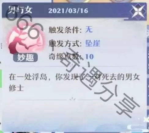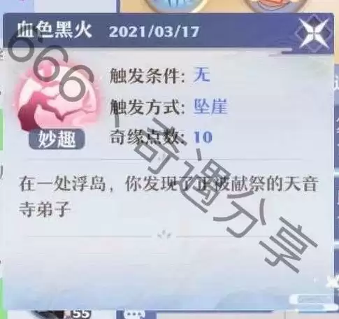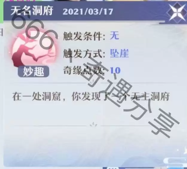 奇遇:无名洞府、男与女、迟来机缘、血色黑火、神秘坛子。