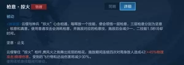 掠火枪法,是云缨独有的绝技,地地道道的中国枪,而她的被动技能属于主心骨技能,每次释放技能都会获得“枪意”,一共可以获得三种,使用普攻则可以直接释放,叠加三层枪意获得的普攻效果也是不同的,下面指尖会在123技能中分别给大家演示。