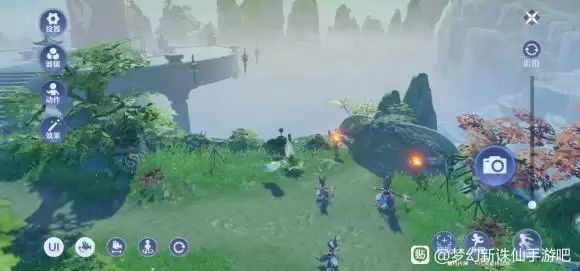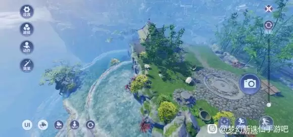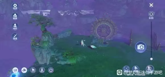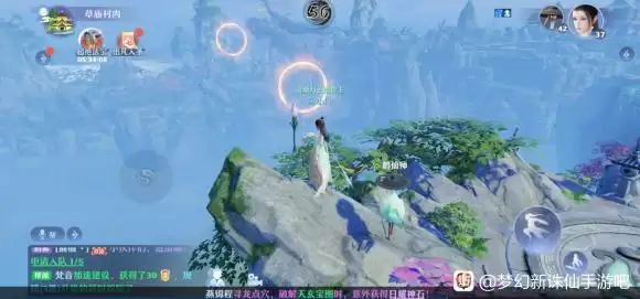 17.这个石台最边上的大石头上有个风车,点击风车出来这两个圈圈,我感觉这种圈圈最难飞,我每次都要飞三四次圈圈不需要每个都穿过,但是至少要穿过一个,要不然你的气息支撑不了你御剑飞那么远。