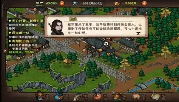 3.去南阳客栈发现他在喝酒,讲了之前被陷害的往事,大概就是仙人跳,那两人前段时间在塞北,陆迩想在南阳寡妇(业务挺广,太乙师兄最爱)那打听真相,然后再打着正义旗号去报复。