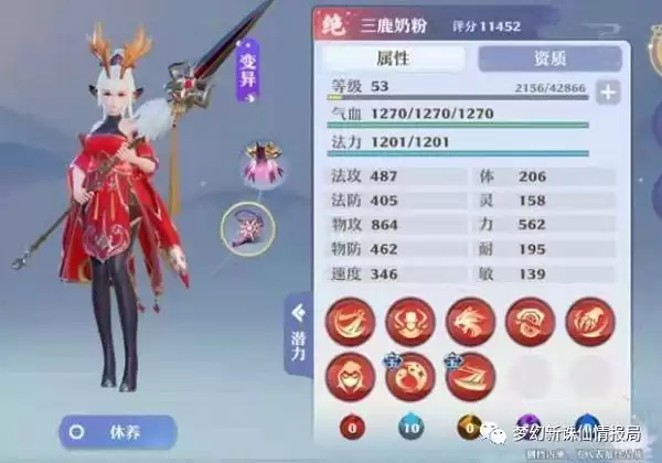 (3)配速隐攻,速度加到比人物角色快50避免乱敏,其余加点全部加力量,这样的变异白鹿不仅能补伤害,还能在人物倒地时拉起来释放技能。