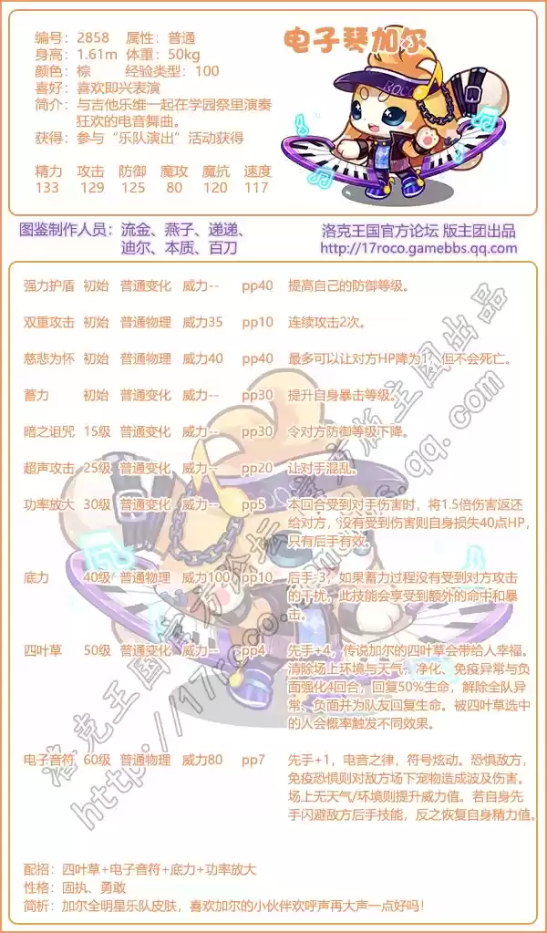 《洛克王国》电子琴加尔技能属性图鉴