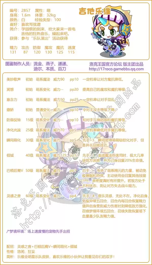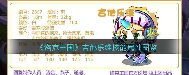 《洛克王国》手游吉他乐维怎么样呢?想必很多小伙伴都想知道这个宠物技能属性是什么,技能如何配招呢,下面小编就给大家带来了《洛克王国》吉他乐维技能属性图鉴介绍,一起看看吧!