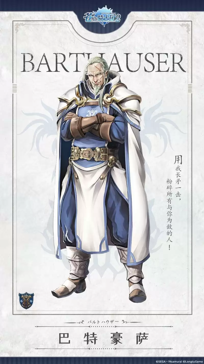 苍之骑士团2巴特豪萨怎么样,值得培养吗?巴特豪萨从前代开始就一直为国王服务,拥有赫赫战功,培养出了无数杰出人才。下面小编给大家带来《苍之骑士团2》巴特豪萨人物介绍,感兴趣的小伙伴们一起来看看吧。