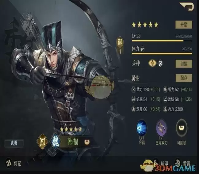 《荣耀新三国》韩福技能属性图鉴