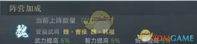 而且他的技能属性也非常适合前期的开荒,百分比的伤害率配上满星所带来的,非常可观的基础武力值,并且作为魏国的武将,韩福和曹操还可以组成双魏国羁绊。获得5%的武力、智力和统率提升。