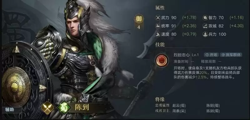 荣耀新三国手游陈到怎么样,值得培养吗?《荣耀新三国》是一款三国历史题材的战争策略手游。游戏中知名的英雄非常多!下面是小编给大家带来的《荣耀新三国》手游陈到技能属性图鉴分享,一起看看吧!