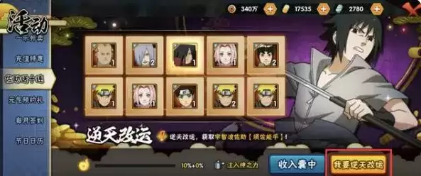 这个活动第一阶段就是免费给你10连抽,概率应该是保持了跟游戏内的高级招募一样,也就是说你有很大的概率这次十连抽是出不来须佐能乎佐助碎片的。具体可以看一下我自己的实测,意料之中的拿到了一个保底秽土斑碎片,但既然是送须佐能乎佐助的碎片活动,必然也会有其他的办法来拿到,这个时候需要看那个神奇的“逆天改运”的按钮了。
