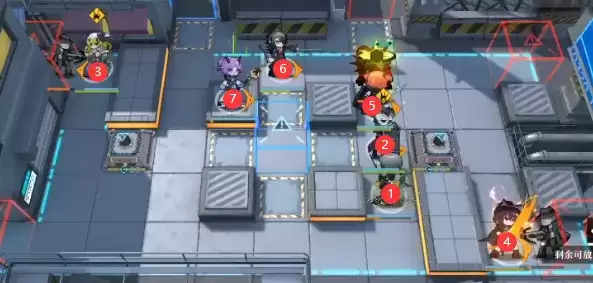 再之后左上和右下分别下群卫和挡1近卫堵门,然后奶盾前方重装挡无畏者并吸收仇恨防止装置被打。