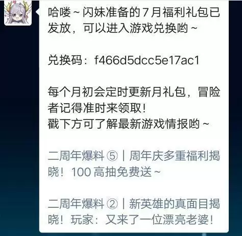 闪烁之光七月礼包兑换码2021
