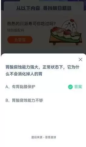 题目:胃酸腐蚀能力强大,正常状态下,它为什么不会消化掉人的胃?