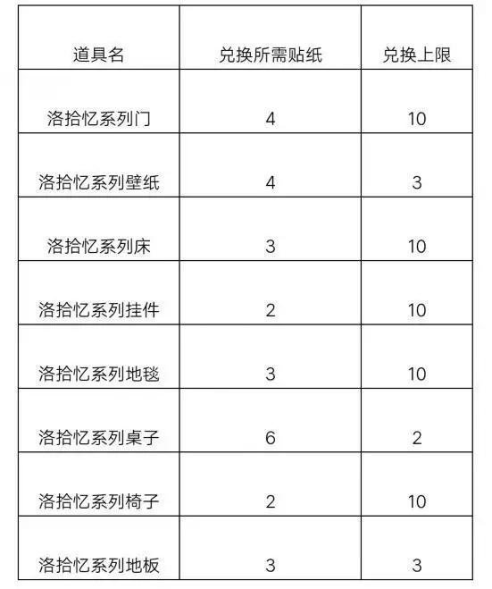 纪念贴纸可以用来兑换十一周年庆纪念家具。可以兑换的家具包含:洛抬忆系列门、洛拾忆系列壁纸、洛拾忆系列床、洛拾忆系列挂件、洛拾忆系列地毯、洛拾忆系列桌子、洛拾忆系列椅子、洛拾忆系列地板。
