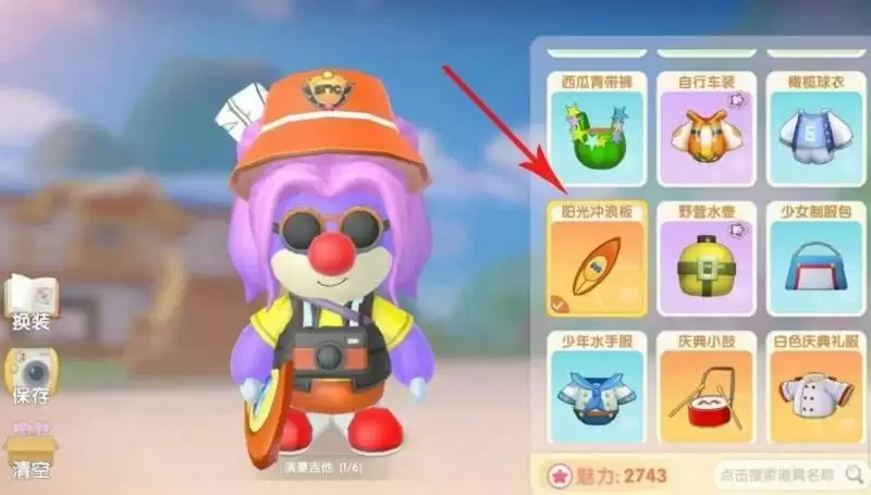 4、选择冲浪小子套装,进入水里即可使用阳光冲浪板。