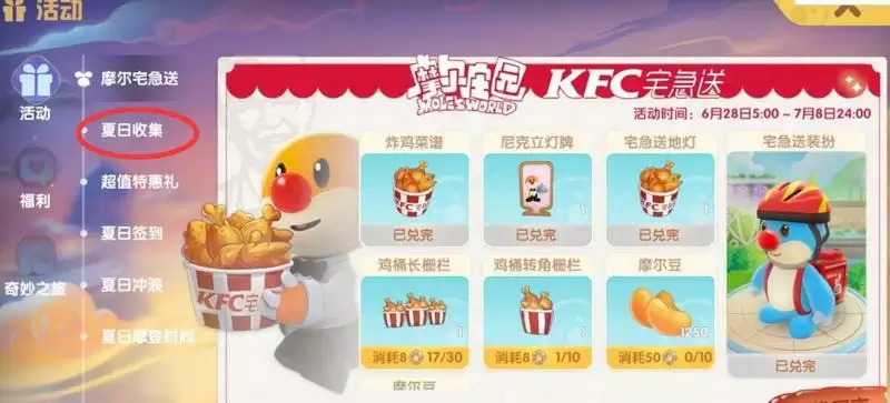 夏日收集物品获取: