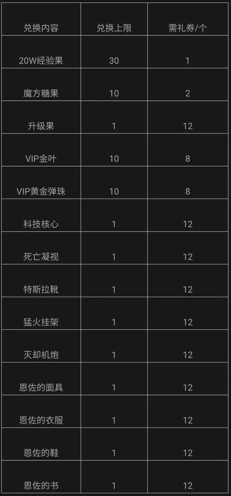 礼券兑换进化资格说明: