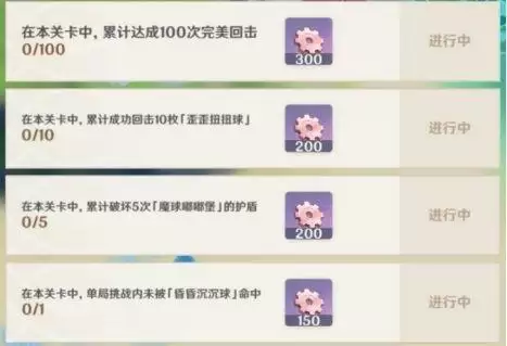 5、累计回击10次歪歪扭扭球:难度有点大,因为歪歪扭扭球的轨迹不定,想要完成该任务的旅行者需要多练一练哟~(或者多打几次)