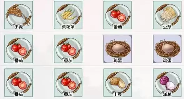 2、番茄炒蛋:番茄、番茄、鸡蛋、鸡蛋;