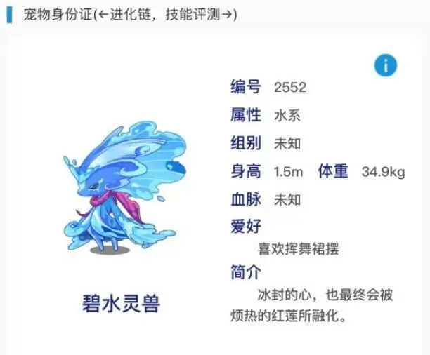 碧水灵兽技能有:慈悲为怀、源头活水、冰冻、飞燕凌波、逍遥游、水灵动、雨飘摇、趁势击。碧水灵兽,腾讯游戏《洛克王国》中的宠物,由魔法先锋队成员水灵兽破茧重生而来。冰封的心,也最终会被炽热的红莲所融化。
