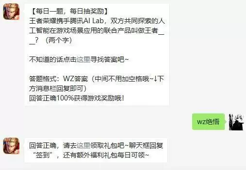 王者荣耀携手腾讯AI Lab,双方共同探索的人工智能在游戏场景应用的联合产品叫做王者