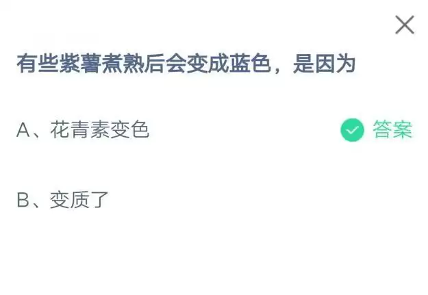 支付宝蚂蚁庄园小课堂2021年7月9日每日一题答案是什么?支付宝蚂蚁庄园小课堂每天的凌晨更新一道题目,答对后能领取小鸡饲料,今天的问题是【有些紫薯煮熟后会变成蓝色,是因为】?下面小编就给大家带来了正确答案,不清楚的朋友不妨随三大妈小编一起来看看吧。