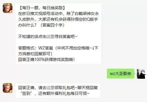 在昨日推文视频号活动中除了白鹤梁神女永久皮肤外大家还有机会获得孙悟空的Q版手办叫什么