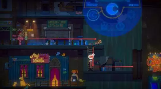 一直跟着小男孩向前跑,他会跑进一个巷子,主角没有选择继续追赶,此时店门口出现一个老人和一个小女孩,我们告诉他情况之后,得知老人就是要找的查尔斯,他看完植入设备的照片后,提到有个叫布兰克的机器人脑中也有这个装置,我们可以去找一找布兰克。布兰克是奇妙街的全息导游花音的维护技师,她也许知道线索,于是我们一直向右走前往奇妙街。