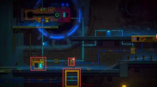 回到水车附近后,调整沿途两个方框中的电分流器,使电路流动与下图一致。最后按下左边的控制台,使水车完全运转。