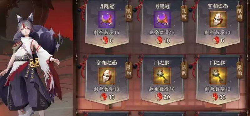 月隐冠:活动期间每日0:00回复30个,玩家也可以通过商店直接购买获得,售价5勾玉,每日限购15个。