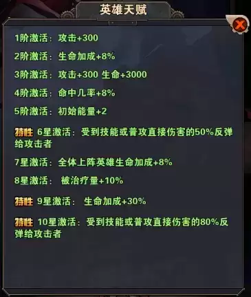 雅典娜升阶升星后的天赋为她在战场上提供了巨大的buff加持,在升到6星后直接升级技能的50%被动反弹伤害,到了10星更是有80%的反弹伤害效果,仿佛雅典娜能凭着一己之力,对抗整个世界。