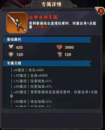 雅典娜的武器专属不仅能带来生命和攻击以及一定的抗打属性,还能带来受到普通攻击直接伤害时,回复自身1点的能量的加成,极大提高了雅典娜的生存和输出能力。