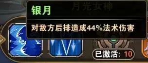 月光女神是针对后排的控制型法师,她的普通攻击能造成一定的法术伤害,对于没有任何防御的脆皮后排来说,她的伤害不低并且不易于被针对。