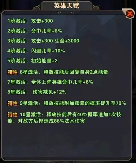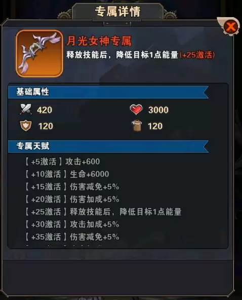 皎月的英雄天赋随着本身的星阶越高其技能的加成就越厉害,在升阶至9星,将技能的眩晕概率从45%提升到70%,到了10星的时候,释放技能还会有40概率再追加1次技能,这个时候可以留意到在激活6星的时候,皎月释放技能还能回复2点能量,意味着皎月在持久战中,人品爆发能多好几次的技能输出控制机会,让敌方后排毫无还手之力。